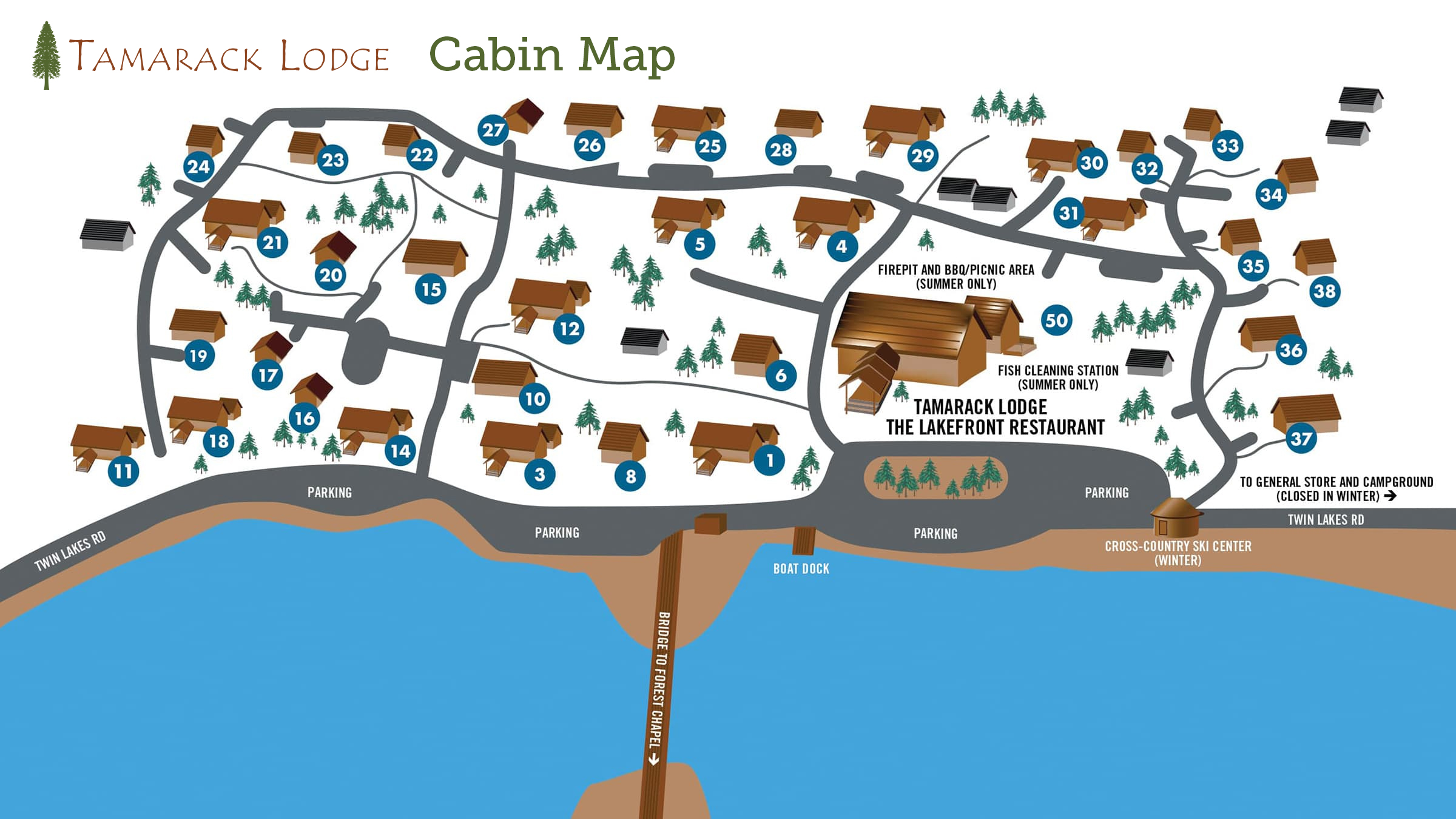 To get to Tamarack Lodge & Resort from Highway 203, continue straight on 203/Main St., which becomes Lake Mary Road at the second stoplight intersection. Continue straight ahead. At the top of the hill, turn right at the sign for Tamarack Lodge. The lakes will be on your right-hand side and the resort on your left-hand side. Get Directions